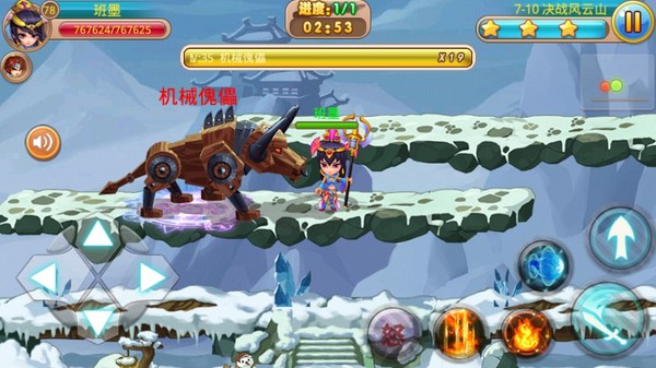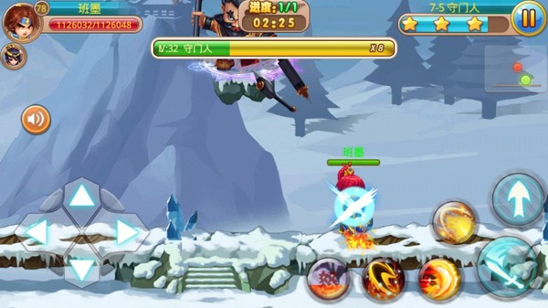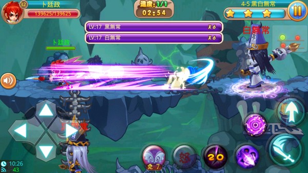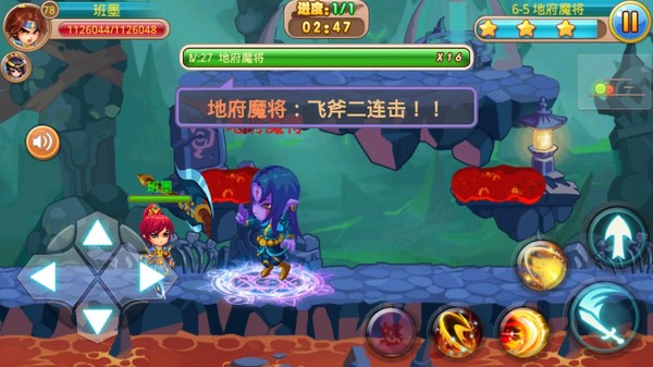 這個關卡會出現兩個BOSS,一黑一白,白無常不用管,直接打黑無常,因為打白無常是不會掉血的。但是要注意,黑無常有一個必殺技—-旋風錘,這個技能是一定要躲的,否則會被一直旋風至死,場面極其殘忍。避開黑無常的旋風錘後,沖上去就是一頓暴揍,多揍兩頓,他們就服了!