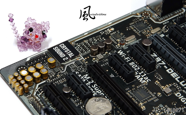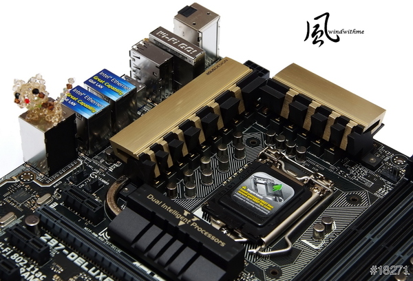 金色髮絲紋路的散熱模組讓Z97 Deluxe在視覺感與質感也有很不錯的呈現