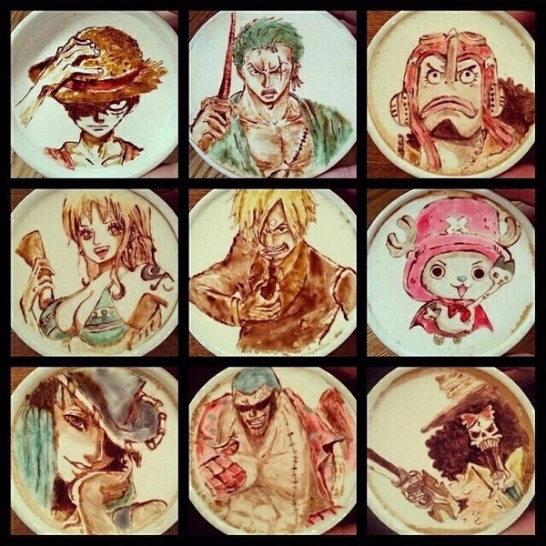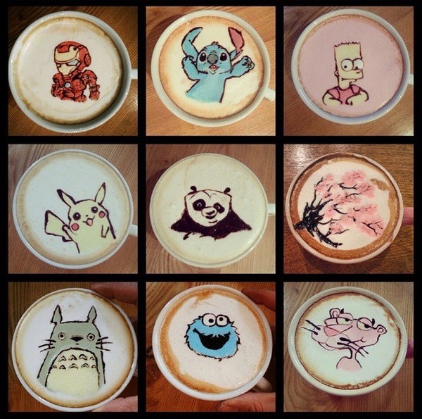 當然除了人物寫真外,像這樣的動漫角色也難不倒他,不管是日韓動畫角色還是高人氣的電影主角,他都可以利用糖漿上色,賦予咖啡拉花新的色彩,讓客人在味覺和視覺上都能達到溫暖的療育效果。
