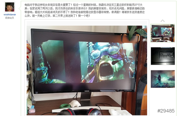 网友拍的图片都很棒啊,曲面的感觉出很到位,曲面很美呀,看来我要买曲面显示器是正确的选择
