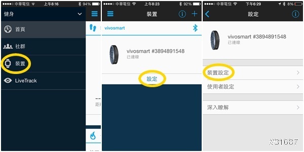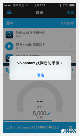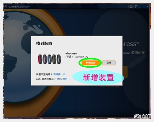 接下來就可以進行Garmin vivosmart 健身手環的裝置設定…