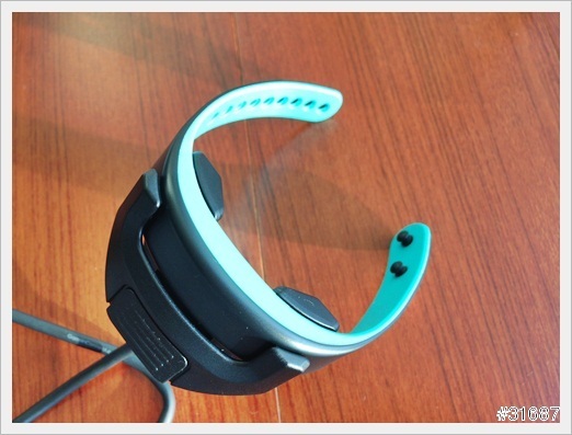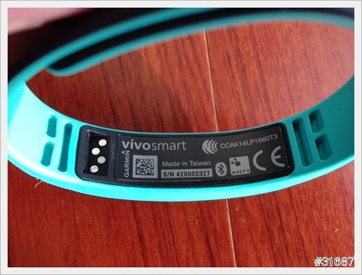 手環的背面有產品序號和MIT的品質保證!!另外可以注意到左邊有四個圓形的金屬,這是和傳輸線接合充電的地方。