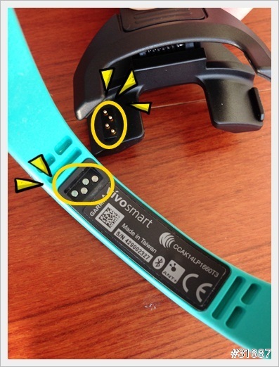 正確的接合如下圖所示,可以看到手環和傳輸線之間沒有空隙,充電有防呆設計,大家可以放心使用!!