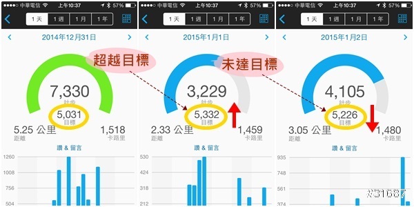因為我是低活動者,所以系統內建每日目標5000步,當你有達標或未達標時,系統會自動調整隔日目標步數,就像有個貼身教練在身邊一樣,量身訂定專屬的個人每日目標。
