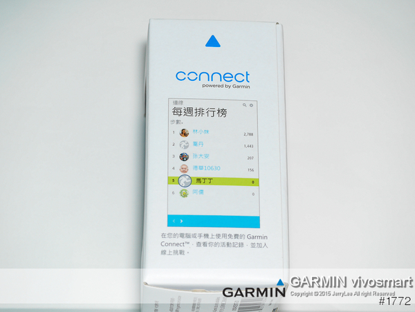 ▲產品的側面照(可以看到Garmin Connect™ Mobile 可以用來與制定目標)