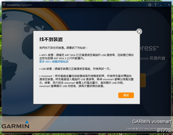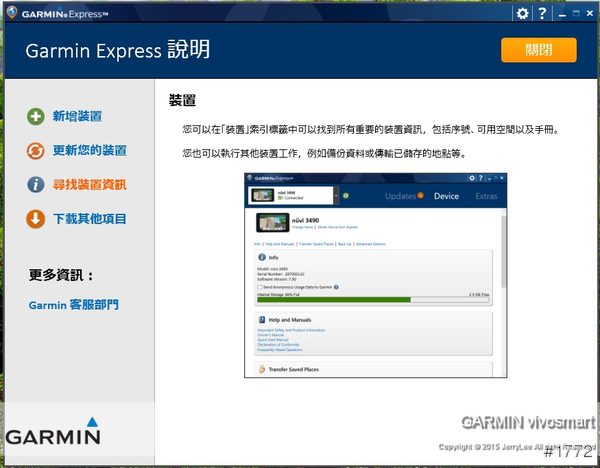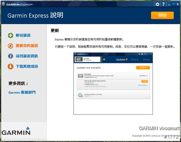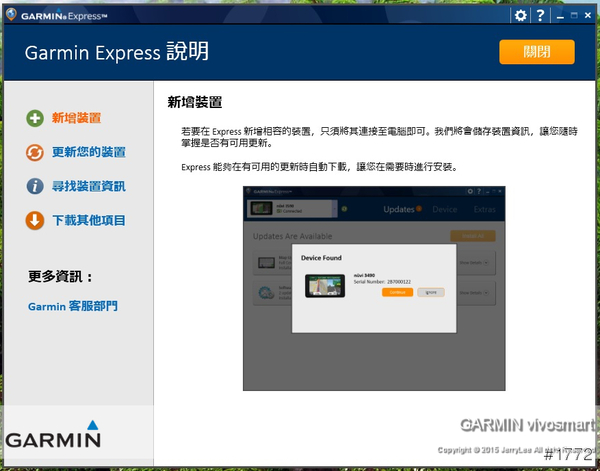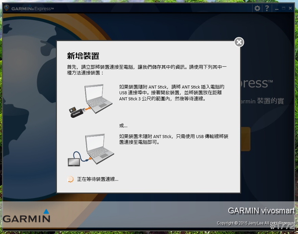 ▲看完GARMIN Express說明後,準備開始新增裝置