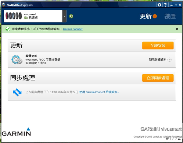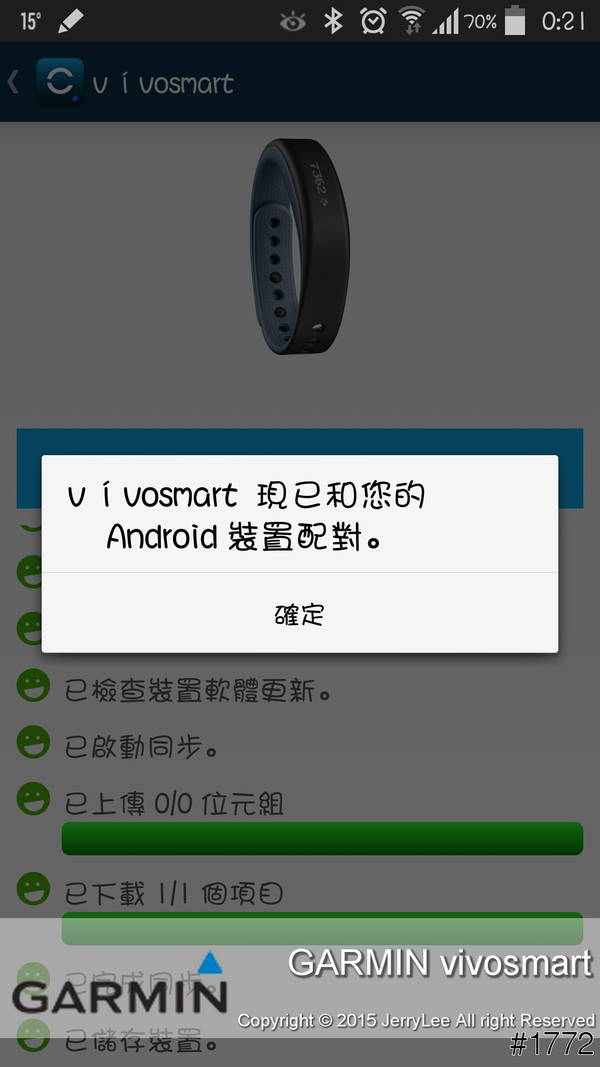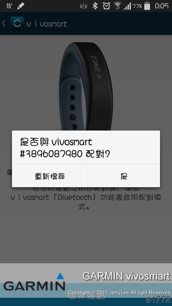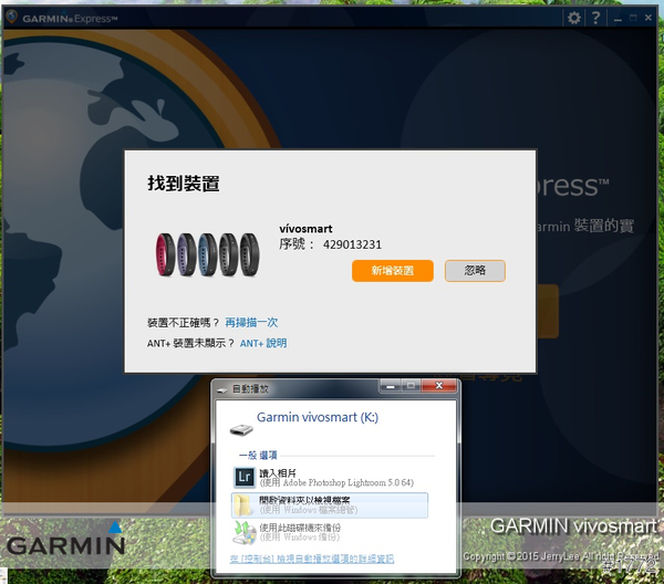 ▲vivosmart手環連線之後,電腦就會跳出新增裝置的訊息