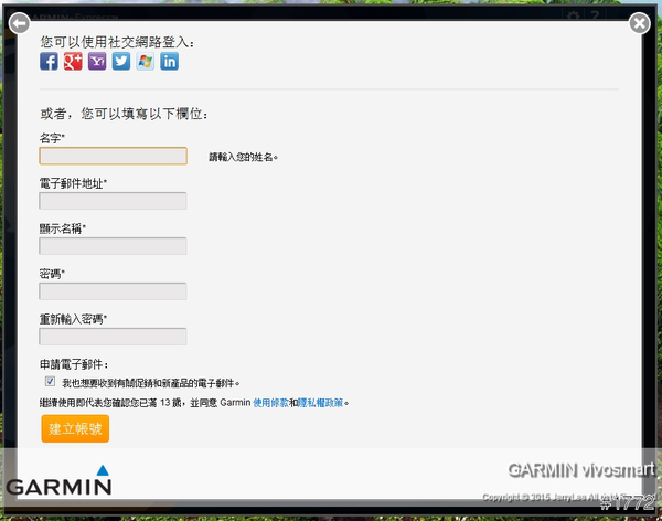▲這邊要另外註冊一個新帳號不過資料可以與Garmin Connect連結