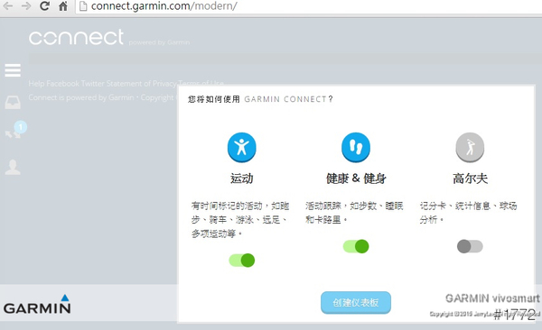 ▲第一次登入Garmin Connect這邊可以選擇活動來建立訊息面板