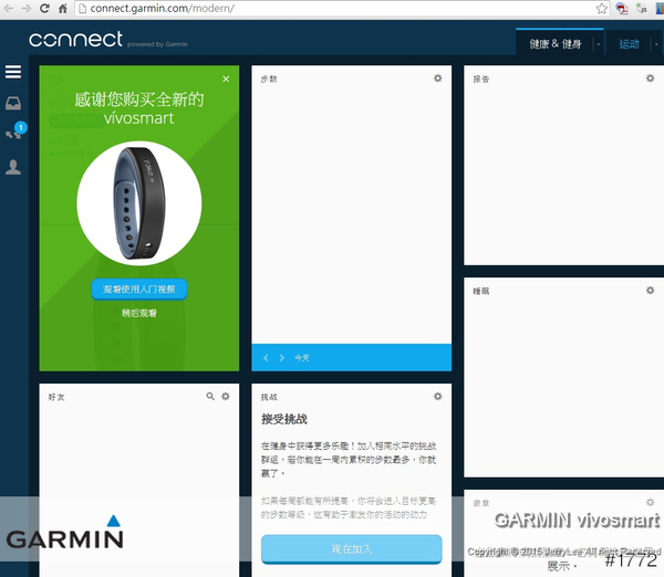 ▲這就是建立Garmin Connect帳號登入之後的情形,目前幾乎都空白,因為還沒有日常活動的資料
