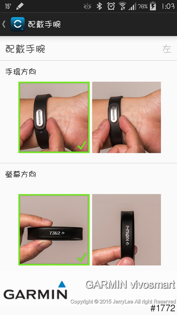 ▲配戴的手環的方向跟顯示的方向有很大的關係