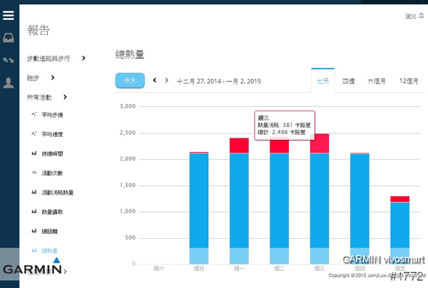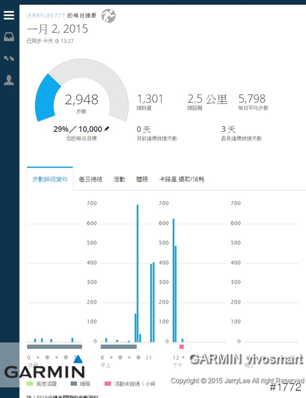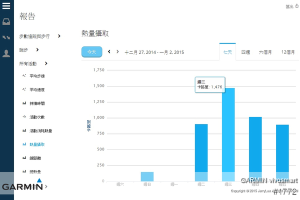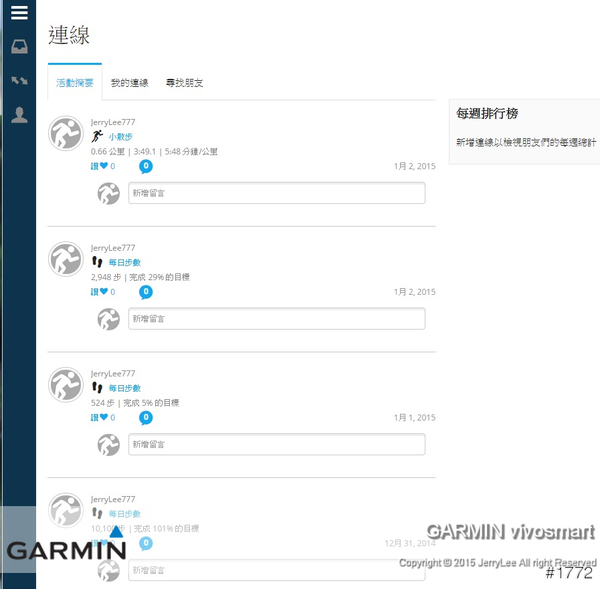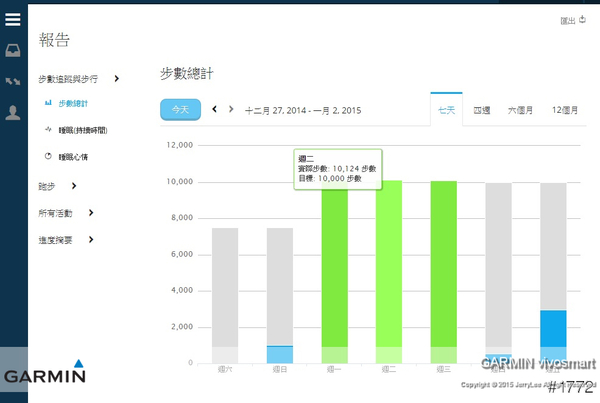 ▲在一週體驗下來,可以看到PC版的Garmin Connect上面已經滿滿的紀錄資訊(PC版的因為桌面比較大所以可以一次就看到全部數日的紀錄,手機板的則是適合觀看細項的詳細紀錄)