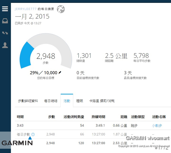 ▲設定完成後,就可以到Garmin Connect開始追蹤我的活動