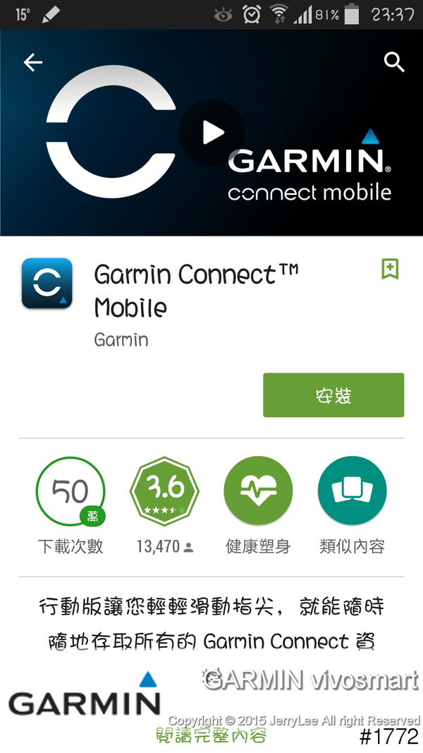 ▲前面提到PC方式啟動Garmin Connect,這邊在補充手機方式啟動Garmin Connect Mobile連線應用