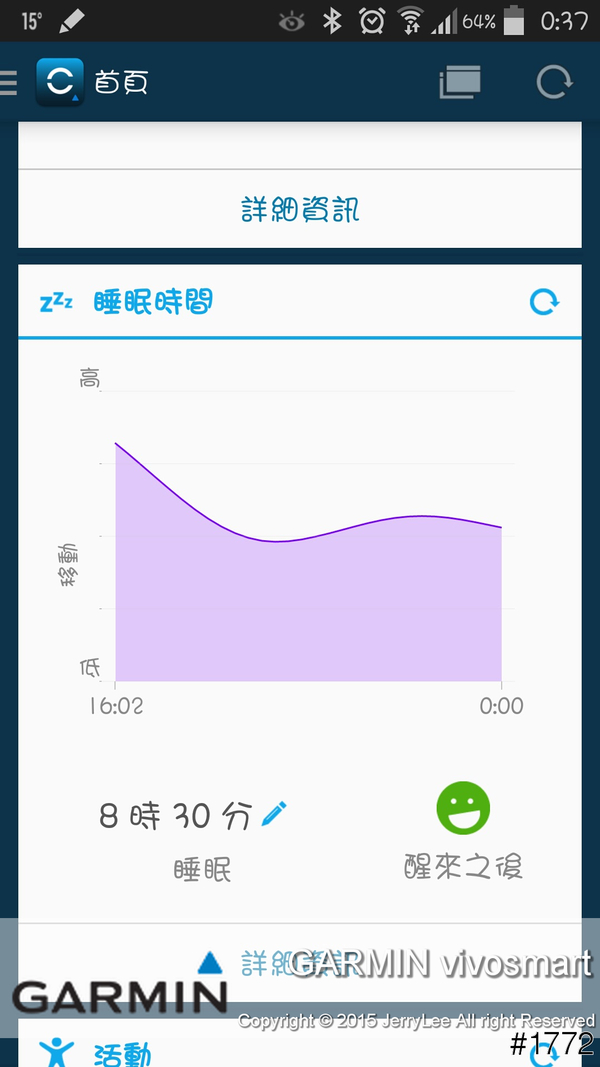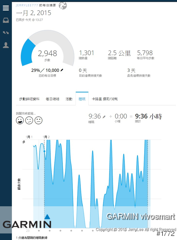 ▲睡眠也會有紀錄,半夜起來活動的步數