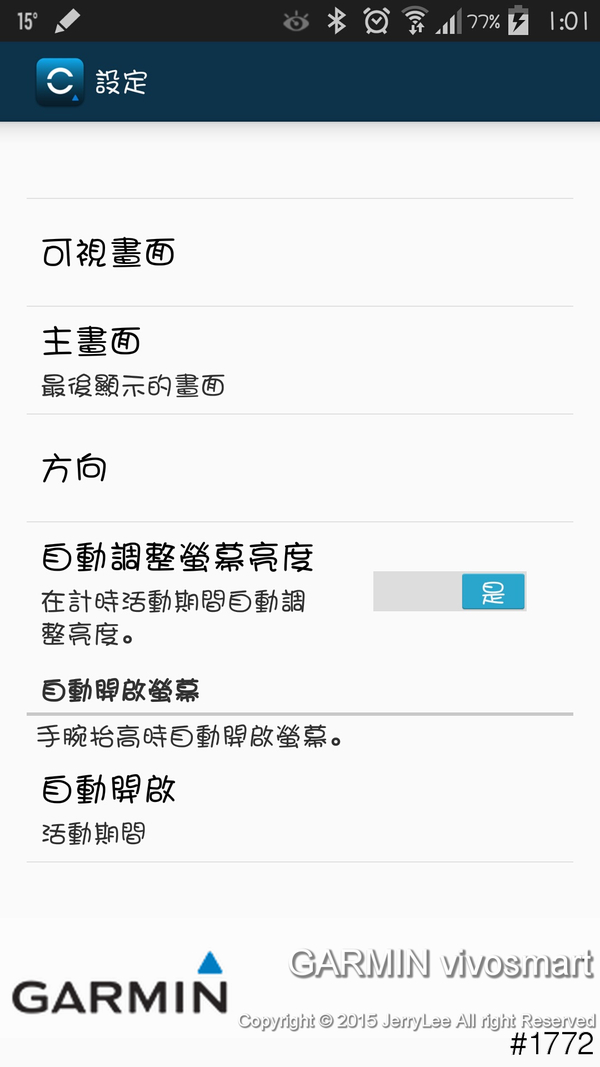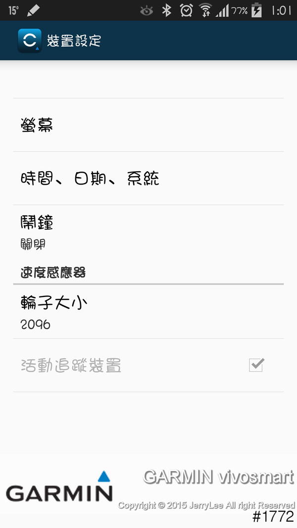 ▲首先先進來手環的裝置設定,可以設定手環的一些常用設定