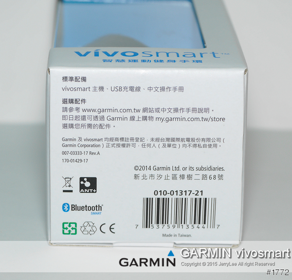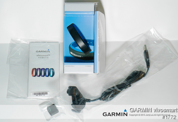 ▲主要配備vivosmart手環、USB充電線、中文操作手冊,還有支援低功率藍芽(BLE) / ANT+