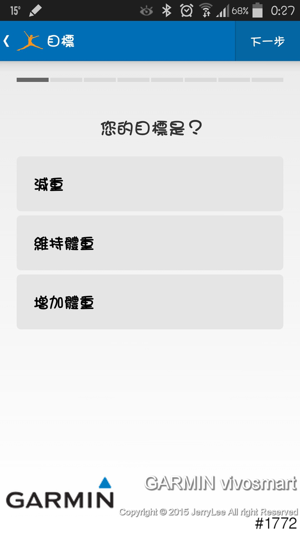 原本我以為我做不到,想不到經由Garmin vivosmart智慧運動健身手環規劃之後,可以以日行萬步目標前進,而且還會不時體醒我該起來動動了,就跟我當初所想的一樣,有了貼身教練在你身旁提醒激勵,自然而就會有動的原力,。