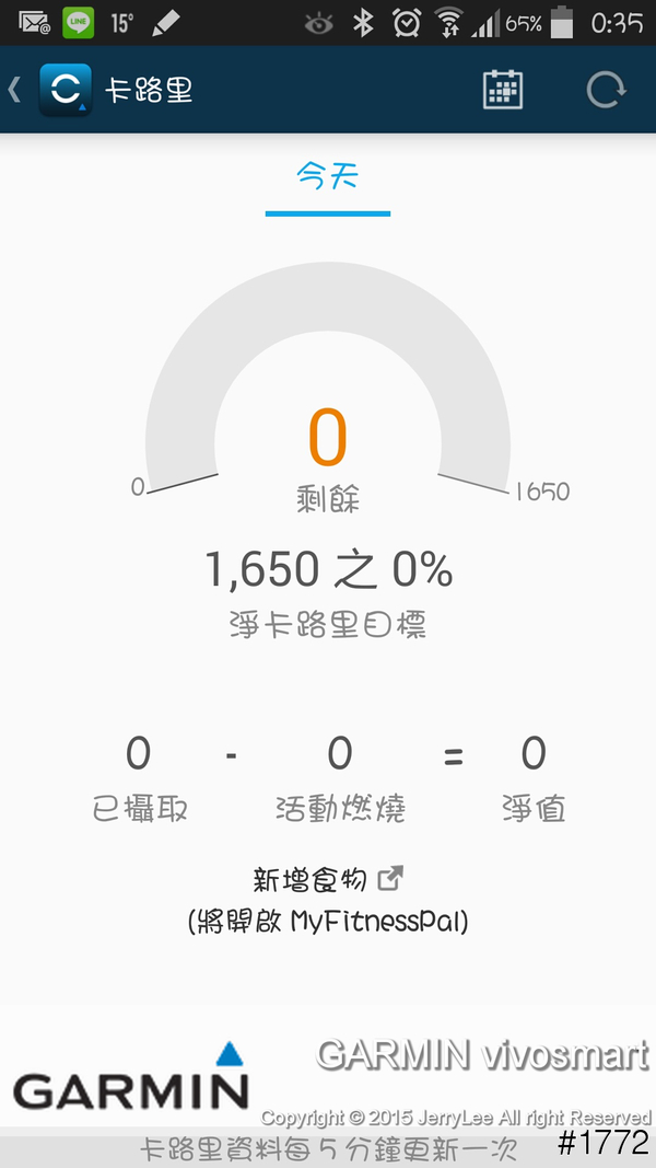▲卡路里部分可以與”MyFitenessPal”連線,來紀錄三餐攝取的卡路里,已整合當日基礎代謝率與攝取卡路里總和