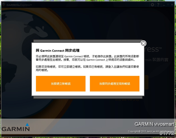 ▲新增完成之後,可以建立新的Garmin Connect帳號或是用既有帳號做連線設定