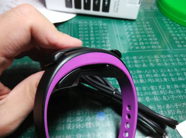 ▲手環內側左邊有四個金屬接點,為USB充電夾充電使用。