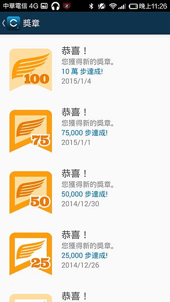 ▲Garmin Connect還有獎章模式,從12/24起到1/4,米踩可是走了十萬步呢。