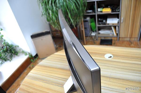 从正面看屏幕曲面的感觉不太明显,现在看的清楚了吧,曲面的这个弧度非常他有美感,从性能上说曲面也是有优势的