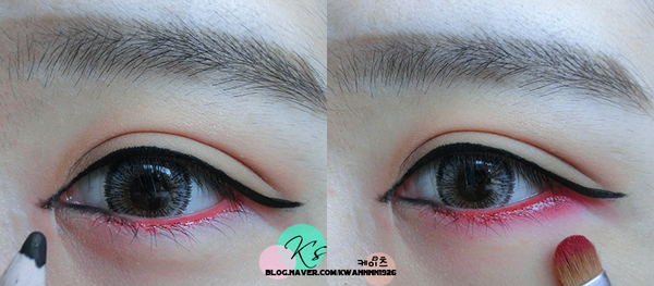 4) 下眼線的部分,則是畫上紅色的眼線,只要畫一半就可以了喔!