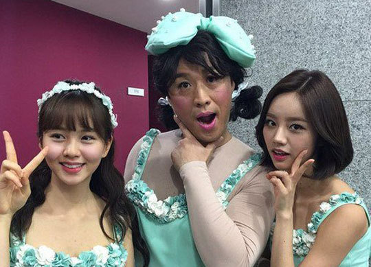 這是無限挑戰的主持人鄭埻夏在年末頒獎典禮上表演時的打扮,他穿上了 Girl's Day 的打歌服模仿她們,只能說這才是「同件衣服;不同感覺」的「極」啊XD