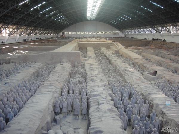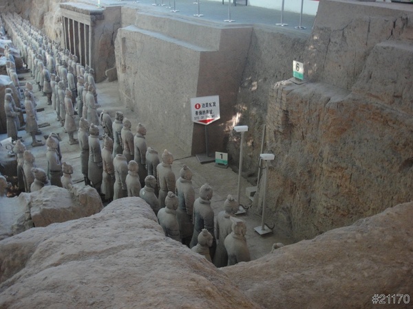 雖然這已是第二次來到兵馬俑,進入一號坑展館裡,面對著這蔚為壯觀的兵馬俑,盛大的軍容場面,還是讓人非常震撼。有時想說,古代帝王建造兵馬俑、長城、金字塔這些動員全國之力,勞民傷財之舉,留至今日確成為無價的文化遺產,到底是功是過難以定論,只待千古身後事,自有人評說了。