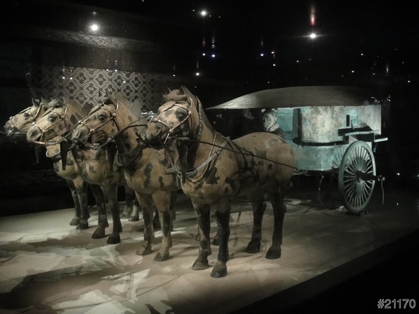 這二輛青銅馬車從他們出土位置,距離陵墓封土旁只有20公尺,就可知道他的重要性了,銅馬車的比例是依照當時所使用的馬車,縮小二分之一的比例制作的,屬皇帝的御用車隊,象徵著秦始皇靈魂出巡時所乘的鑾駕。