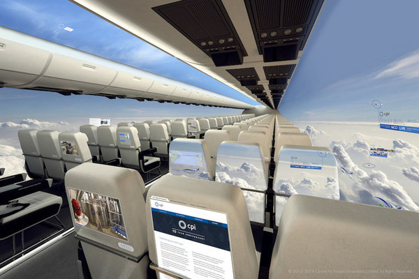 英國的 The Centre for Process Innovation (CPI) 正在開發一架沒有玻璃窗戶的飛機,用大量的液晶顯示器取代玻璃。