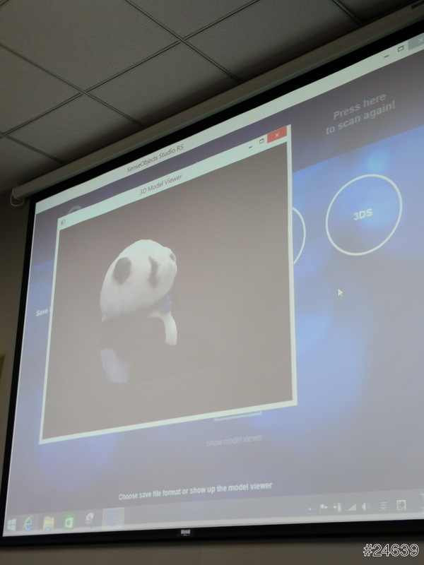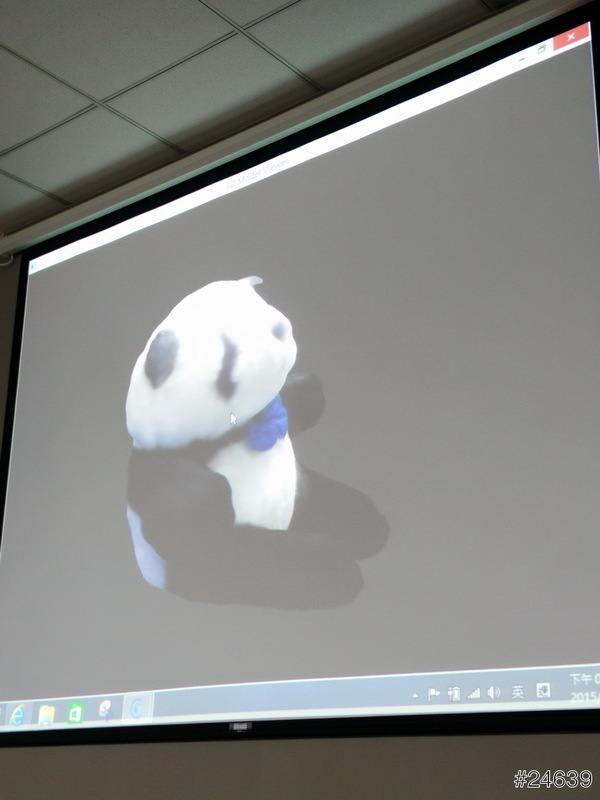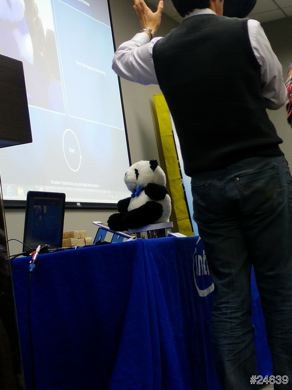 3D掃瞄的軟體,配合INTEL的處理器,再加上他們的定位器,就可以成功的將一隻熊貓玩偶以3D的模式給掃進軟體中。