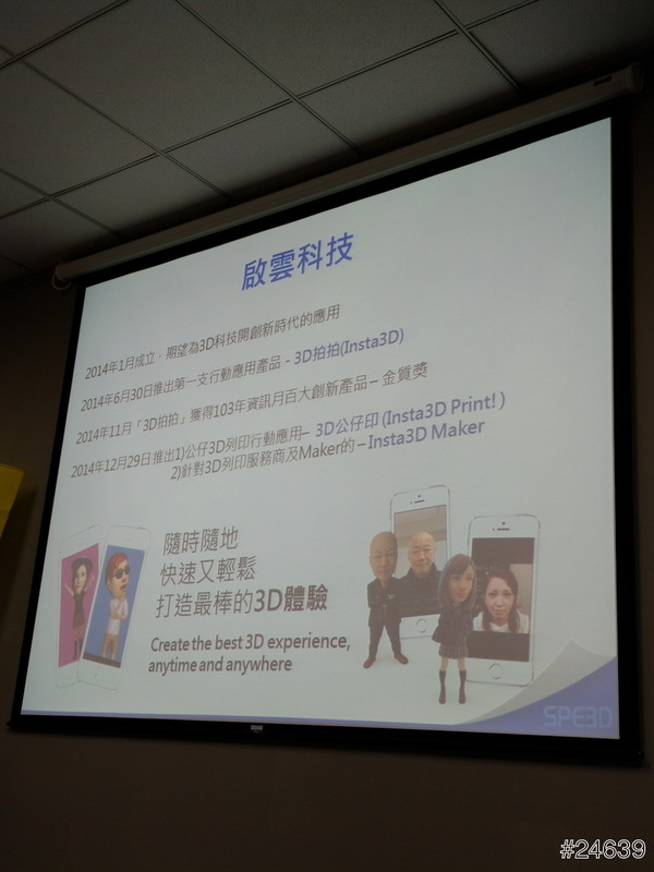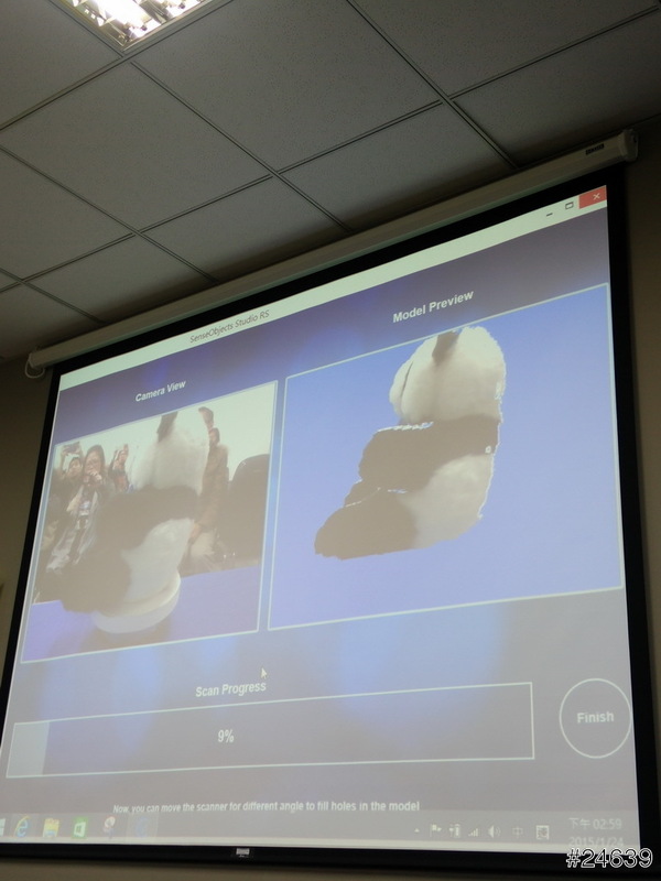 接下來,是由四維科技來介紹他們最新全球首創的3D掃瞄軟體,其軟體可以將物品(玩偶、杯子、等立體的東西)都可以掃瞄起來,然後再經由3D的方式再呈現出來。其掃瞄的精密度會由其處理器的不同來表現。