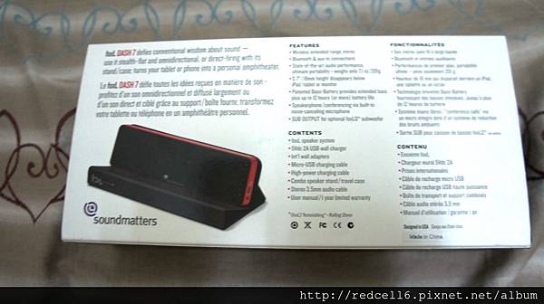 【▼】Soundmatters foxL Dash 7 藍牙喇叭外包裝圖文並茂的告訴消費者它的功能多多。