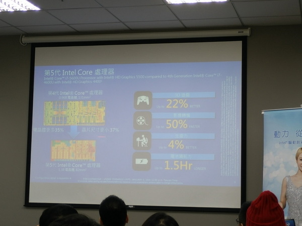 Intel在 CES 上公開新一代的 Broadwell 處理器,改進製程的一個節點。新的 14nm 製程已經為我們帶來了以行動運算、節能為主的 Core M 系列處理器,而今天的 Core i 則是相對更重視效能的一個系列,新的晶片也將支援不少新的技術,像是 Intel 的 WiGig Docking、4K 解析度的 WiDi、還有 RealSense 深度感測相機。