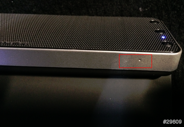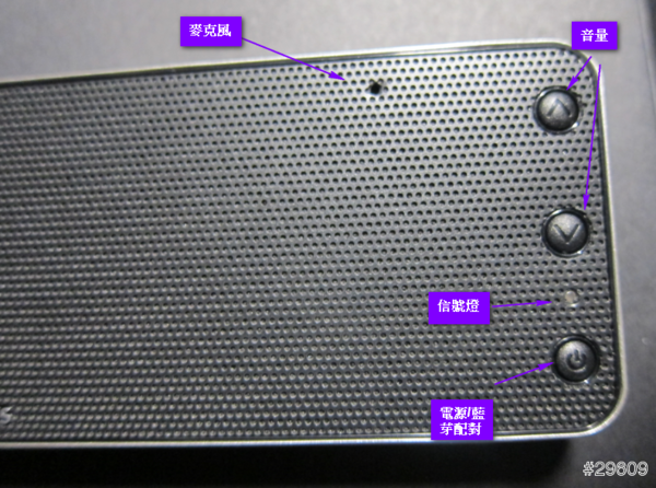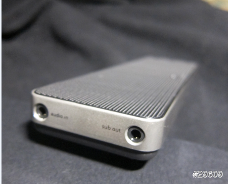 ▼側面有Audio in 和sub out的孔。Audio in就是不透過藍芽接實體線連接你的撥放裝置,sub out就是外接低音喇叭的孔。