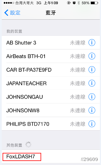 ▼接著打開iPhone藍芽,可以看Fox DASH 7,點一下它就可以進行配對