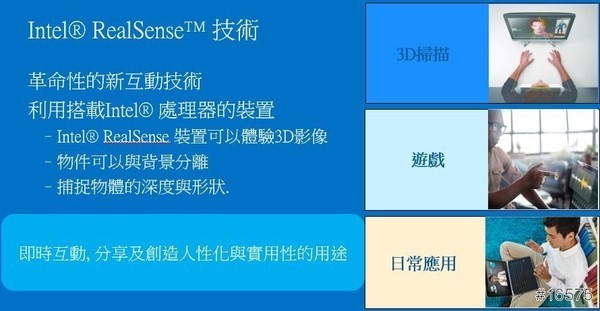 像今天在體驗會上還看到Intel的另一個新技術:Intel® RealSense™技術。這對未來的3D產品,想必有舉足輕重的影響。
