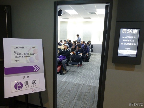 Intel 行動平台再進化 & 3D 頂尖玩家體驗會活動所在的貝塔廳入口。