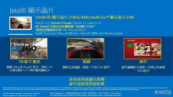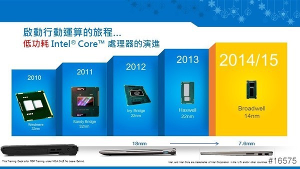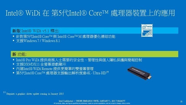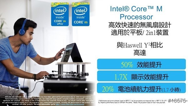 另外,針對筆電2 in 1裝置也推出全新的14nm製程 Intel Core M處理器,除了運算的速度更快,功耗也降低了,所以可以提升電池續航力,也可以讓筆電更輕薄,更可做到無風扇的設計,提供更好的使用體驗,相信大家都很期待Intel的新產品吧!