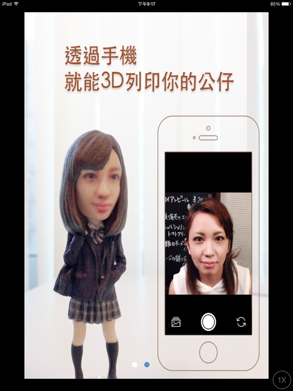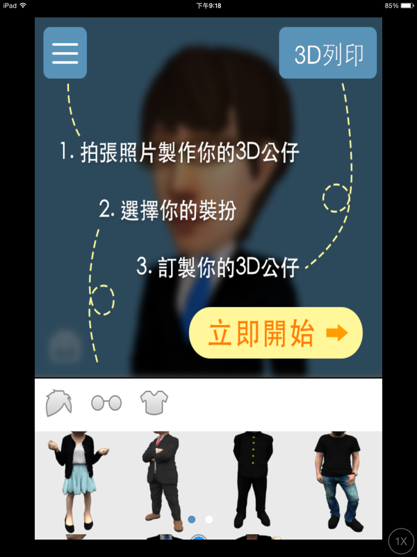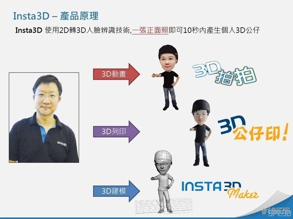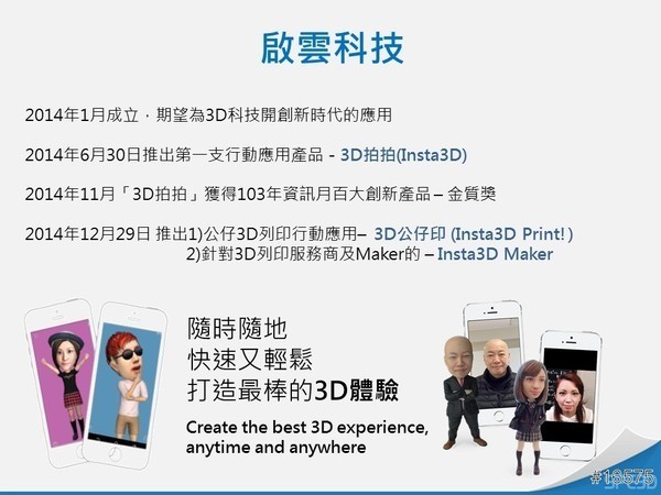 由於3D建模對一般人是一件很困難的事。所以啟雲創造一個大家都會使用的3D應用,只要一個大頭貼就可進行3D建模。