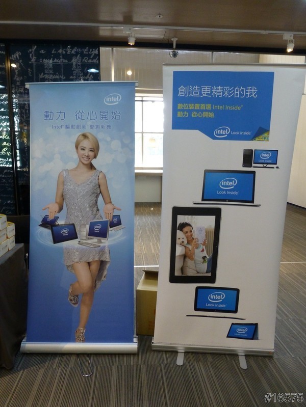Intel現場的展板,上面寫著「動力,從心開始」,以及數位裝置首選。
