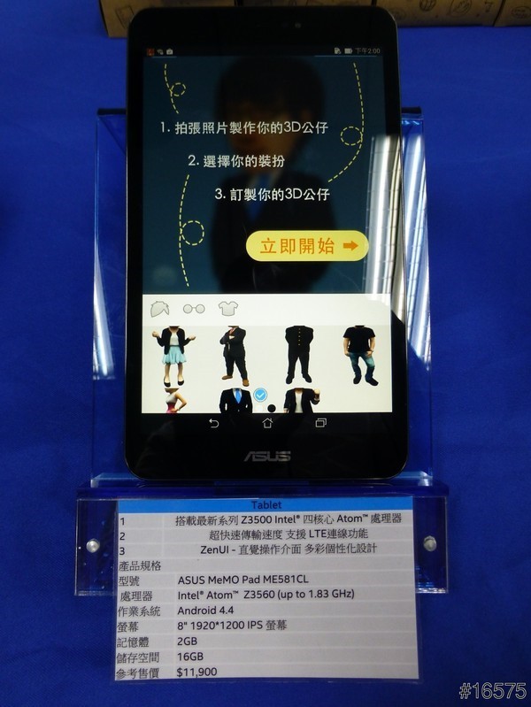 這一臺則是8吋的ASUS MeMO Pad ME581CL,同樣採用Intel Z3560四核心Atom處理器。