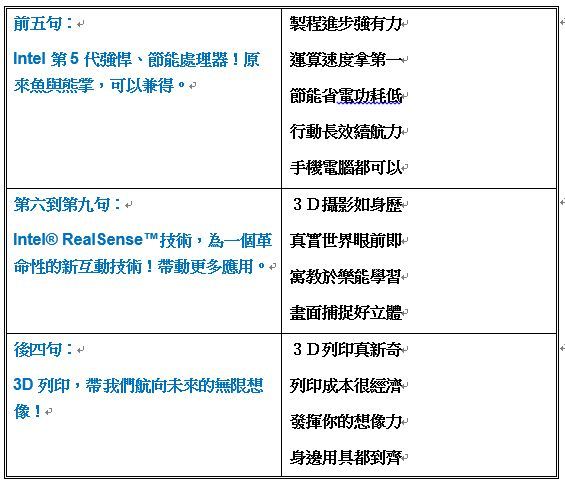 我特別為Intel的Intel第5代強悍、節能處理器;以及3D攝影、3D列印新技術,創作了一首詩: