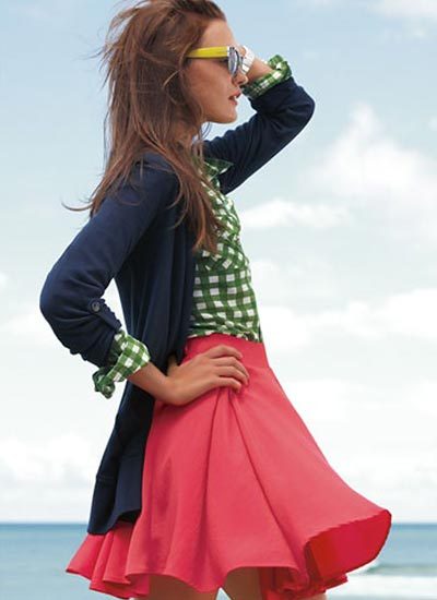 像這樣藍色的格子衫也很有春天的感覺喔!