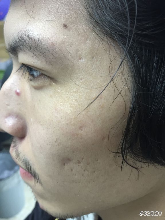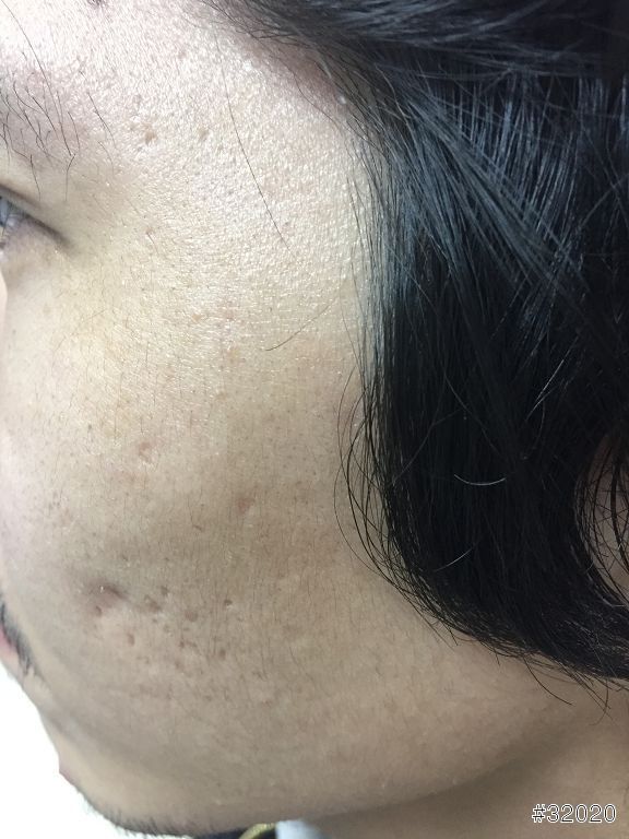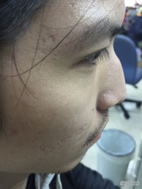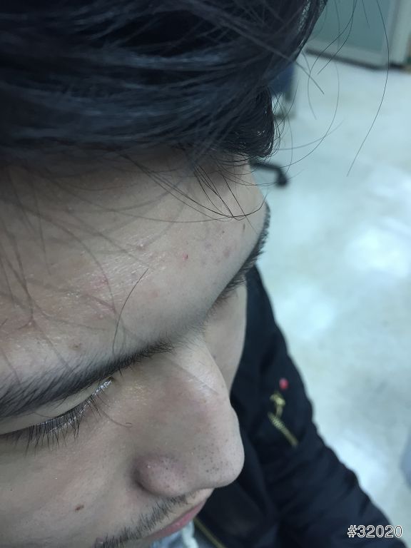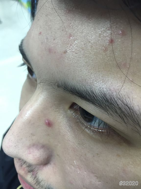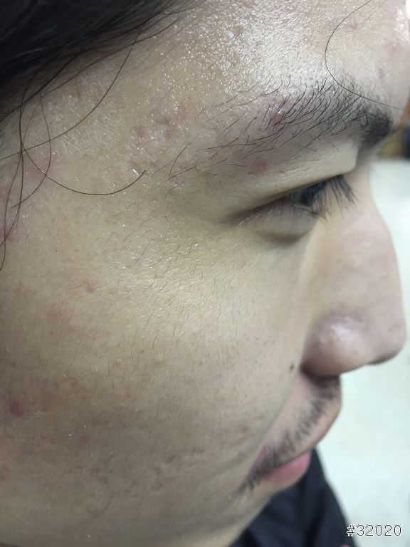 ▲ 額頭上可以看到一些散落各處的痘痘,T字部位也有明顯的出油狀況。