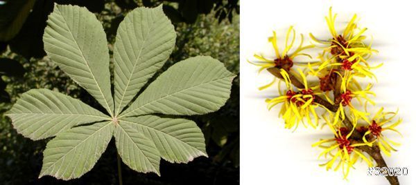 ▲ 左圖為七葉樹;右圖為金縷梅。