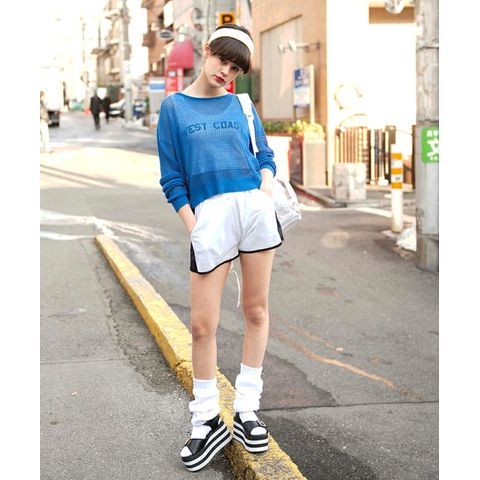 像這樣先穿絲襪再穿一個泡泡襪的搭配方式,不管是韓國還是日本都很流行。