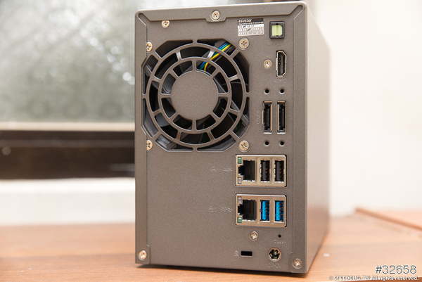 除了正面的USB3.0接孔外,背面配置了USB3.0和2.0各兩個,還有兩個eSATA接孔,連接埠算是給的相當大方,也讓擴充功能或空間時便利不少。另外還配備了兩個Gigabit等級的網路孔,這樣才能有效提升內網的傳輸速度。